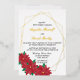 Célébrez votre mariage d'hiver dans un style intemporel avec cette élégante invitation de mariage au poinsettia rouge. Caractérisée par des fleurs de poinsettia illustrées à la main, un cadre en feuille d'or géométrique moderne et une typographie classique rouge et noir. Ce design allie le charme festif à une sophistication raffinée. Parfait pour les mariages de Noël, les célébrations de fêtes ou les cérémonies romantiques d'hiver, cette invitation offre une belle harmonie entre la chaleur saisonnière et l'élégance moderne. Personnalisez-la avec vos informations pour créer une suite de mariage coordonnée et mémorable.