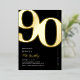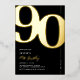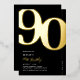 Célébrez le début d'une nouvelle décennie avec style grâce à nos invitations de luxe pour les 90 ans. Conçues avec un chiffre '90' gras dans une police serif accrocheuse et une finition en feuille métallisée réelle dans des tons noirs et or riches. Cette invitation moderne respire la sophistication et l'élégance, idéale pour quelqu'un qui apprécie l'attention aux détails. Personnalisez-la facilement avec notre modèle pour sublimer votre célébration de cet événement marquant !