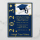 Invitation En Aluminium Casquette, Diplôme & Étoiles, Bleu foncé & Or Grad