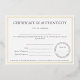 Invitation En Aluminium Certificat d'authenticité traditionnel