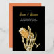 Héberger un adulte seulement Halloween bash? Invitations amis avec ces invitations éffrayantes chic en feuille d'or avec une main squelettique levant une coupe de champagne pour un toast. "Boos and Booze" apparaît en haut, avec les détails de votre fête d'Halloween.