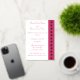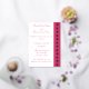 Apportez une touche de charme printanier à votre événement avec ce faire-part de mariage avec une bordure rose framboise brillante sur le côté droit, décoré d'un motif de fines fleurs de cerisiers imprimés en papier d'aluminium. Le côté gauche de la carte offre beaucoup d'espace pour tous les détails de votre événement spécial avec un exemple de texte en place qui peut être customisé pour répondre à vos besoins. Une grande fleur de sakura rose vif finit les choses sur le dos pour créer une note finale douce. Cette invitation sera assortie à tout autre Sakura de Charme dans un produit de framboise afin que vous puissiez facilement rendre votre événement aussi coordonné que vous le souhaitez.