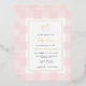 Cette invitation présente un design en vichy classique avec de véritables détails en feuille d'or. L'en-tête de script est une image qui ne peut pas être modifiée. Tous les autres textes sont entièrement modifiables. Pour une personnalisation plus avancée de cette conception, il suffit de cliquer sur le bouton "Customiser" ci-dessus.