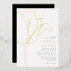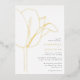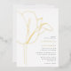 A chic black white wedding invitation features a single gold foil tulip. Personalize all the important details including bride and groom name, wedding date and location.