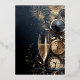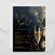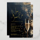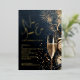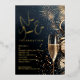 Stylish New Year's Eve party invitations feature your details in chic gold foil on a midnight blue background with a champagne glass, clocks, confetti and fireworks.