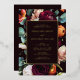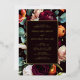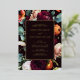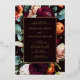 Cette élégante invitation de fiançailles mariages d'automne présente un véritable script de calligraphie de feuille d'or et un cadre de feuille d'or avec une bordure florale de roses bordeaux, oranges et roses rousses à l'eucalyptus. Félicitations pour votre prochain mariage ! Conçu par Susan Coffey.
