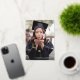 Ce chic faire-part de graduation comporte une photo verticale pleine image et un script élégant dans un magnifique papier surélevé. Le "Diplômé" et le nom de votre élève sont tous deux en feuille surélevée. Sur le dos il y a une autre photo avec un texte pour une fête de remise de diplômes / maison ouverte. Ce texte d'invitation peut également être supprimé. Le pétrole est disponible en or, argent ou or rose et brille absolument !