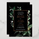 Ce magnifique design de faire-part de mariage présente une magnifique illustration botanique verte et un arrière - plan noir. Le cadre, vos noms et la date du mariage sont tous en papier peint. Ce design élégant est un choix fabuleux pour de nombreux styles d'événements, du classique au boho. Vous pouvez customiser encore plus ce design en ajoutant une autre photo ou du texte supplémentaire à l'arrière-plan. Le pétrole est disponible en or, argent ou or rose et brille absolument ! Sélectionnez de vraies invitations de mariage pour ajouter ce facteur wow! !