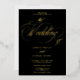 Chic et élégant vrai feuille d'or et noir calligraphie photo faire-part de mariage.Avec un magnifique script de calligraphie de brosse.