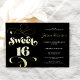 Chic noir or rétro script photo Sweet 16 anniversaire invitation fête avec véritable feuille d'or.