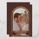 Aimez-vous les tons terreux et les thèmes bohèmes avec des éléments botaniques charmants et une touche d'or ? Cette invitation est pour vous ! Arche élégante avec votre photographie et citation hébraïque adorée, "Le son de la joie et de l'allégresse, la voix du marié et de la mariée", du prophète Jérémie.