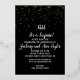 Cette invitation en or et confettis sur fond noir 'Chut ! C'est une surprise' est parfaite pour une élégante célébration d'anniversaire de mariage surprise. Le design présente de véritables confettis en feuille d'or sur fond noir avec une calligraphie blanche élégante.