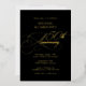 Une écriture élégante et traditionnelle donne le ton pour une belle fête de cinquantième anniversaire. Cette invitation présente une véritable feuille d'or sur fond noir.