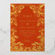 Une élégante invitation mariage de automne avec un cadre dessiné à la main citrouilles et feuilles en véritable feuille d'or sur un arrière - plan orange brûlé. Personnalisez avec vos détails en or.