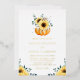 Famille d'Invitations et amis avec ce faire-part de mariage citrouille personnalisable en feuille d'or pressé. Il dispose d'un citrouille d'aquarelle avec des tournesols jaunes, du coton et des feuilles d'eucalyptus. Cette invitation à la tournesol rustique est parfaite pour les mariages d'automne ou d'automne. Personnalisez en ajoutant les détails de votre mariage. Ce faire-part de mariage de feuille d'or est disponible dans d'autres finitions de feuille.