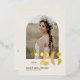 Célébrez votre graduation avec cette invitation personnalisable de graduation photo avec un cadre photo en arc. Cette invitation à obtenir un diplôme de boho est parfaite pour les diplômés de l'automne, que ce soit pour les diplômes du secondaire ou du collège. Choisissez parmi une variété d'options de couleur et de cartons pour correspondre à votre thème de graduation. Cette invitation de graduation en feuille d'or est la meilleure façon de partager votre moment marquant avec vos amis et votre famille. Que vous l'envoyiez pour un baccalauréat, un baccalauréat ou une autre réussite scolaire, ce design personnalisé donnera le ton d'une célébration mémorable.