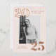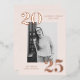 Invitations modernes de remise de diplômes avec la photo verticale du diplômé encadrée en crème avec 2025 en gras, feuille d'or rose aux coins supérieur gauche et inférieur droit. Personnalisez le devant des invitations de la fête de remise de diplômes avec le nom du diplômé et le nom de l'école. L'invitation de graduation de feuille s'inverse pour afficher les détails de votre fête en lettres noires avec un arrière - plan crème. La couleur arrière - plan peut être changée en une couleur de votre choix grâce à notre fonction d'édition. Les invitations de la soirée de remise de diplômes en or crème et rose travaillent parfaitement pour les deux parties de fin d'études secondaires et collégiales.