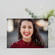Une élégante invitation à la graduation pressée en feuille avec une photo horizontale avec superposition de classe 2022 et un texte modifiable minimal sur le devant. Le dos a un endroit à utiliser pour annoncer l'obtention du diplôme et les détails de la fête.