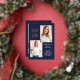 Ces invitations modernes et élégantes à la grande fête comportent trois photos du diplômé, plus leur année de graduation 2024 en gras, rose en feuille d'or sur un arrière - plan bleu marine foncé. De nombreux motifs dorés ajoutent une touche élégante à l'avant de la carte.