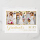 Fêtons le diplômé ! Invités Invitations à votre événement avec cette invitation personnalisable de graduation photo. Il dispose d'une calligraphie moderne et d'un format de trois photos. Personnalisez-le en ajoutant vos détails. Cette invitation de graduation de feuille d'or est également disponible dans d'autres cartons et couleurs.