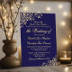 Cette belle faire-part de mariage en feuille de papier présente un style classique avec des fils en dentelle et des lettres de script fantaisie sur un arrière - plan bleu marine. Le libellé est formel et traditionnel, l'invitation étant émise par les parents de la mariée. Élégante et élégante, cette invitation ajoutera classe et grâce à votre célébration mariage.
