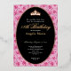 This elegant pink and rose gold foil black floral 18th birthday debut invitation has roses, a rose gold tiara crown, and a rose gold foil oval with a personalizable template to create your own message. The invitation template is customizable in the listing editor and is also available as a digital download that's printable after you personalize it. This is a luxurious design that will set the tone for an elegant debut party.