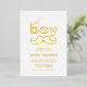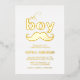 Invités Invitations à votre événement avec cette amusante invitation à baby shower pressée en feuille d'or. Il présente une typographie simple avec une illustration de moustache. Personnalisez en ajoutant le nom, la date, l'heure et d'autres détails du baby shower. C'est une façon mignonne et drôle d'annoncer que vous avez un bébé garçon. Cette invitation de baby shower de feuille d'or est disponible en d'autres couleurs de feuille.