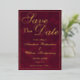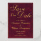 Classic Gothique Élégant Or Bourgogne Enregistrer La Date Foil Invitation.