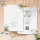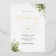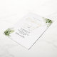 Cette élégante invitation de mariage avec feuilles de verdure botanique en feuille d'or véritable peut être personnalisée avec vos informations en typographie chic avec les détails de votre site web de mariage et code QR au verso. Conçue par Thisisnotme