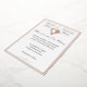 Il s'agit d'un faire-part de mariage de 5' x 7'', montré en blanc élégant avec des accents roses en feuille d'or. L'avant de l'invitation a une large bordure en feuille. Il s'agit d'une véritable feuille italienne, disponible en or, argent et or rose. Les accents de feuille comprennent le nom de la mariée et du marié, un coeur au design rose, une ligne horizontale, un coeur fantaisiste, et un contour de feuille à l'avant. Le revers comprend un motif "Notre journée spéciale", avec des détails sur le mariage.
