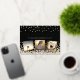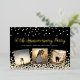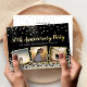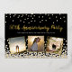 Élégant design de carton d'invitation d'anniversaire personnalisé avec des confettis dorés et argentés sur fond noir, typographie de script moderne avec les mots "Fête d'anniversaire 50 ans", votre nom et date d'anniversaire et trois de vos photos préférées encadrées dans une feuille d'or métallique. Personnalisez-le avec les détails de votre fête au verso de l'invitation.