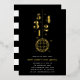5...4...3...2...1...bonne année ! Les invitations festives et modernes de la fête de la Saint-Sylvestre comportent une goutte de boule de feuille d'or et un compte à rebours sur un arrière - plan noir, avec les détails de votre fête en dessous en blanc.
