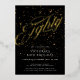 Invitation En Aluminium Confetti 80 Black Gold Elégant 80e anniversaire