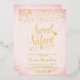 Cette belle invitation au sweet sixteen est parfaite pour toute fille élégante. La bordure supérieure de confetti, Sweet sixteen avec le coeur graphique et le libellé d'invitation sont accentués en papier d'aluminium pressé sur un arrière - plan rose doux légèrement texturé. Une magnifique invitation qui est juste pour une fête d’anniversaire amusante et mémorable.