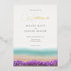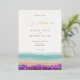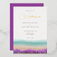 Faire-part de mariage avec Bright azure et rose magenta paysage nature avec la côte fleurie et les montagnes. Paysage floral Sunny Nature. Silhouettes de montagnes, côte de mer et fleurs roses et violettes lumineuses. Faire-part de mariage arrière - plan de peinture aquarelle. Azure Coast dans Bloom Collection.