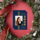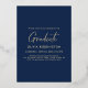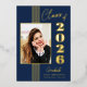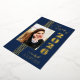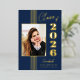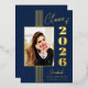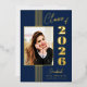 Cette élégante classe de bleu marine élégante de 2025 l'invitation de la fête de graduation a de vraies bandes de feuille d'or, cadre photo, et texte.