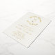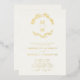 Faire-part de mariage Crème à monogramme Couronne de feuilles en Or véritable Tendance... Le devant de notre faire-part de mariage tendance en or véritable présente une couronne botanique de feuilles dorées métallisées affichant les initiales du monogramme de la mariée et du marié au-dessus d'un texte de faire-part personnalisé en typographie sérif et sans empattement dorée sur un fond crème délicat. Le verso crème de l'invitation contient tous les détails que l'on retrouve généralement sur des cartes séparées dans le paquet de mariage, y compris l'heure et le lieu de la réception, les options d'hébergement, le site web du mariage, les informations de RSVP et de liste de cadeaux. Tout le texte d'exemple peut être facilement révisé avec vos propres informations sur le modèle de personnalisation.