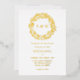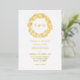 Faire-part de mariage d'or avec véritable feuille d'or à couronne florale. Il a une belle couronne florale pour ajouter les initiales/monogramme de mariée et mariée Utiliser personnaliser ce modèle pour changer le texte.