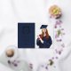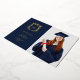 Ces cartes de remerciement de graduation simples et élégantes comportent une crête de feuille d'or avec votre monogramme au centre, et un texte de feuille d'or moderne sur un arrière - plan bleu marine foncé. Il y a un endroit pour ajouter votre photo de couleur, plus de la place pour un message personnel sur le dos. Un look élégant et moderne pour le diplômé.