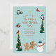 Frontière festive avec des pingouins, des cardinaux, des hommes en pain d'épice et des bonhomme de neige jouant parmi les flocons de neige et les étoiles. Tout le texte est modifiable pour votre parti. Aussi disponible en format non papier