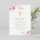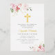 Une feuille d'or moderne croisent violet design floral garçon première carte d'invitation à la communion. Les couleurs et le texte peuvent être personnalisés.