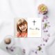 Annoncez la journée spéciale de votre enfant avec cette Croix d'Or Minimaliste Sainte Première Communion Photo Real Foil Invitation. Le design présente une véritable feuille de croix d'or chrétienne sur un arrière - plan blanc propre. La photo de votre enfant est placée à côté des détails de l’événement, créant ainsi un agencement moderne et élégant. Idéale pour les garçons ou les filles, cette invitation est facile à personnaliser.