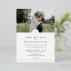 Cette faire-part de mariage catholique ou chrétienne propre et moderne présente une simple croix en feuille avec une photo du couple heureux.