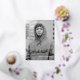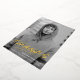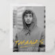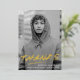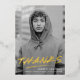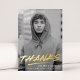 Modern graduation thank you card featuring the graduate's vertical photo with "Thanks" in real gold foil handwritten lettering with a dash below. Personalize the trendy photo graduation thank you card by adding the graduate's name and school name. The gold foil graduation thank you card reverses to display your type d or handwritten message with a background of black and white dashed brushstrokes.