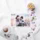 Un mariage moderne enregistrez la carte de date avec un design épuré et minimaliste avec votre date dans une grande police en gras sur le côté droit, sur votre photo horizontale préférée. En haut à gauche se trouvent "Save the Date" et les détails de votre événement. Le dos a une deuxième image verticale avec votre message. La disposition minimale garde ce design assez élégant pour un mariage formel sans être trop formel. Votre date est dans un vrai papier et tout le texte sur le devant peut être modifié pour l'éditer dans l'outil de conception.