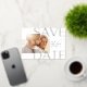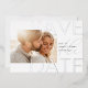 Annoncez votre date de mariage avec ces belles cartes de datation modernes avec une photo horizontale ou orientée paysage avec "enregistrer la date" superposée en papier peint en argent. Personnalisez avec vos noms, votre date de mariage et votre emplacement.
