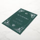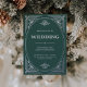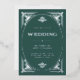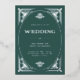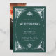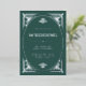 Ces invitations de mariage glamour en feuille d'argent présentent une touche moderne d'art déco classique. Un cadre géométrique et ornementé et argenté décorent un élégant arrière - plan vert festif et festif pour un look mariage des années 1920 spectaculaire, glamour et vintage, qui est parfait pour votre mariage de Noël. Ajoutez votre photo à l'arrière.