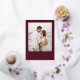 Classic style foil wedding thank you card featuring a simple yet elegant design in a deep burgundy color that is perfect for a fall wedding or a winter / Christmas wedding. Use the template to easily add your favorite photo.