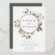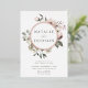 Élégantes invitations de mariage florales hivernales avec vos noms encerclés par une feuille d'or rose avec fleurs d'aquarelle et feuillage. Les fleurs d'hiver sont recouvertes d'une palette de couleurs de rose, rose clair, ivoire et jaune doré doux, avec des feuilles d'eucalyptus et des feuillages d'hiver dans des tons vert sauge et vert forêt riche.