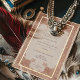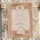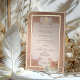 Cette faire-part de mariage exquise saisit l'essence du mariage musulman traditionnel avec son design élégant en dentelle dans une teinte orange chaude et brûlée. Les subtilités délicates de la frontière encadrent la page, menant l'oeil à la calligraphie islamique sacrée en haut du centre. L'arrière - plan ancien parchemin donne une sensation vintage, tandis que les détails ornés autour résonnent avec la grandeur de l'art musulman classique. La riche palette de couleurs de l'orange brûlé, avec des accents de marron profond et de crème subtile, évoque l'impression d'un coucher de soleil, parfait pour une soirée de célébration. Cette invitation n'est pas seulement un héraut des noces à venir, mais aussi un gardien de la beauté et de la signification culturelles.
